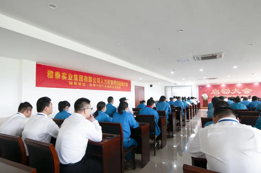 為提升企業(yè)整體管理水平,創(chuàng)造更為優(yōu)質(zhì)的人才環(huán)境,5月21日上午,集團特邀臺灣VMTA健峰企管集團導入人力資源輔導項目,在江蘇雅泰召開雅泰實業(yè)集團人力資源輔導項目啟動大會。