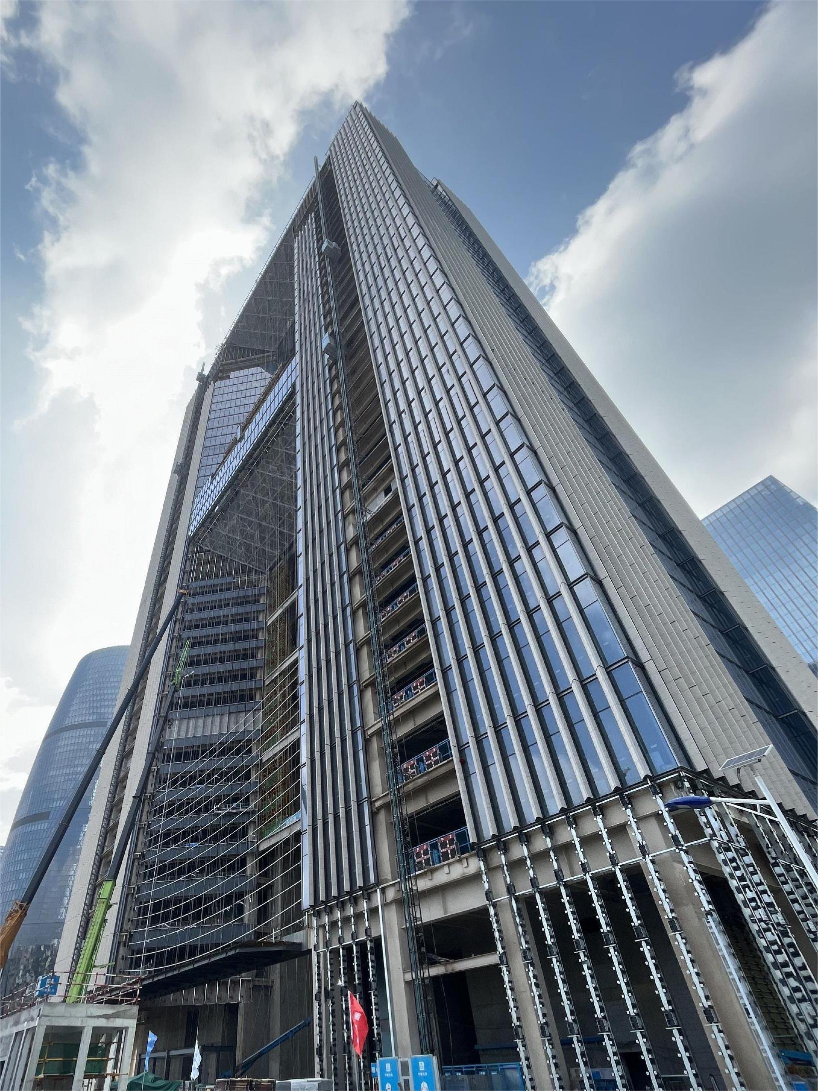 該工程由中國建筑第八工程局有限公司承建,雅泰實業(yè)集團承接外墻裝飾部分材料供材約40000平方米。項目體量大、工期短,目前工程全面進入外墻裝飾階段,集團全力保障該項目的供材,預(yù)計10月完成外幕墻全部封閉。封閉后可以完整地看到大廈上部呈現(xiàn)為一個雄偉的大門,彰顯國家對信息建設(shè)的信心和決心,“信息之門”由此而來。
