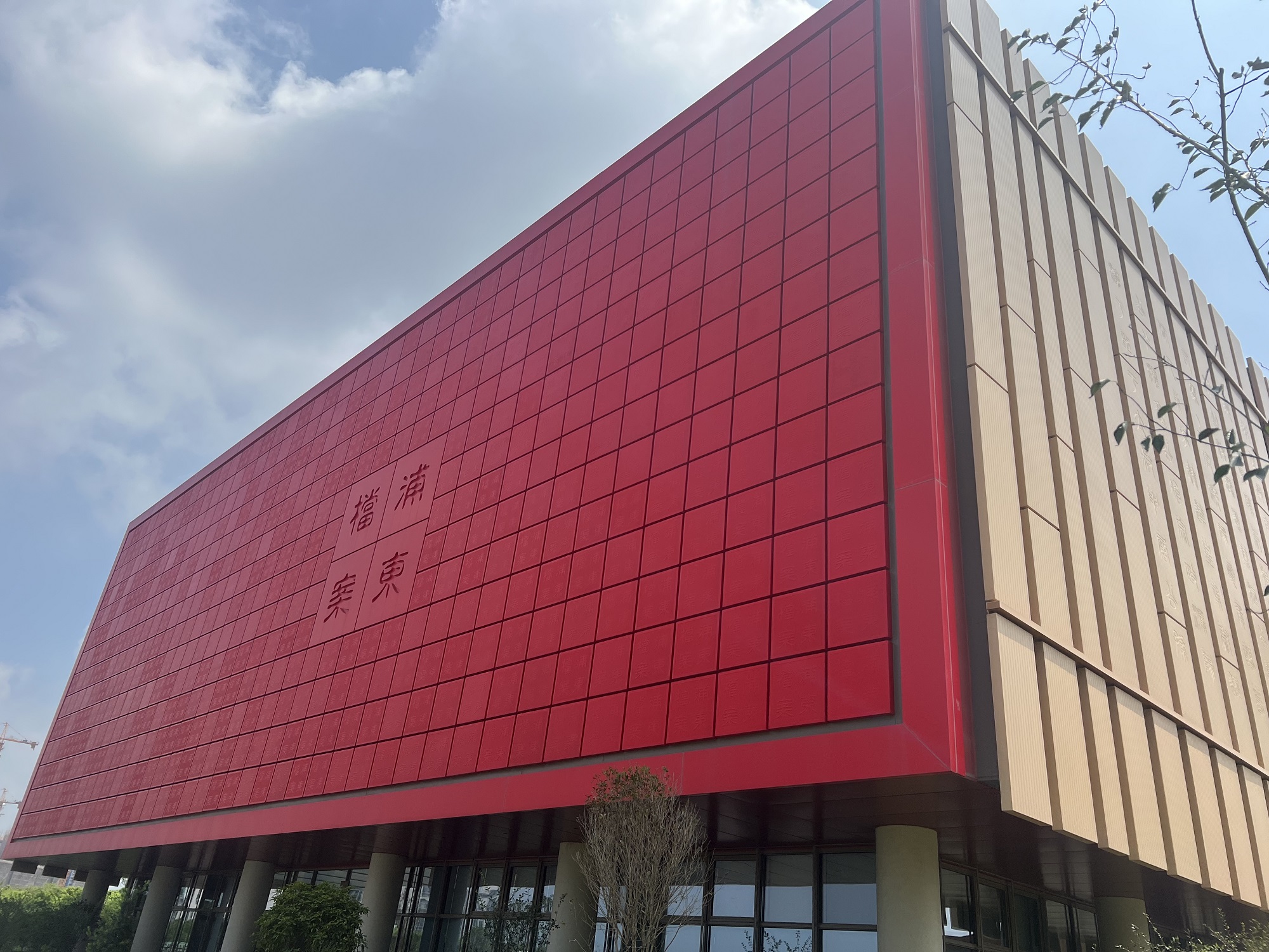 當(dāng)走近位于百潤路100號(hào)的上海浦東新區(qū)檔案館時(shí),瞬間被這座充滿中國文化底蘊(yùn),用一方方紅色印章與一片片原色竹簡,巧妙搭配的建筑深深吸引。