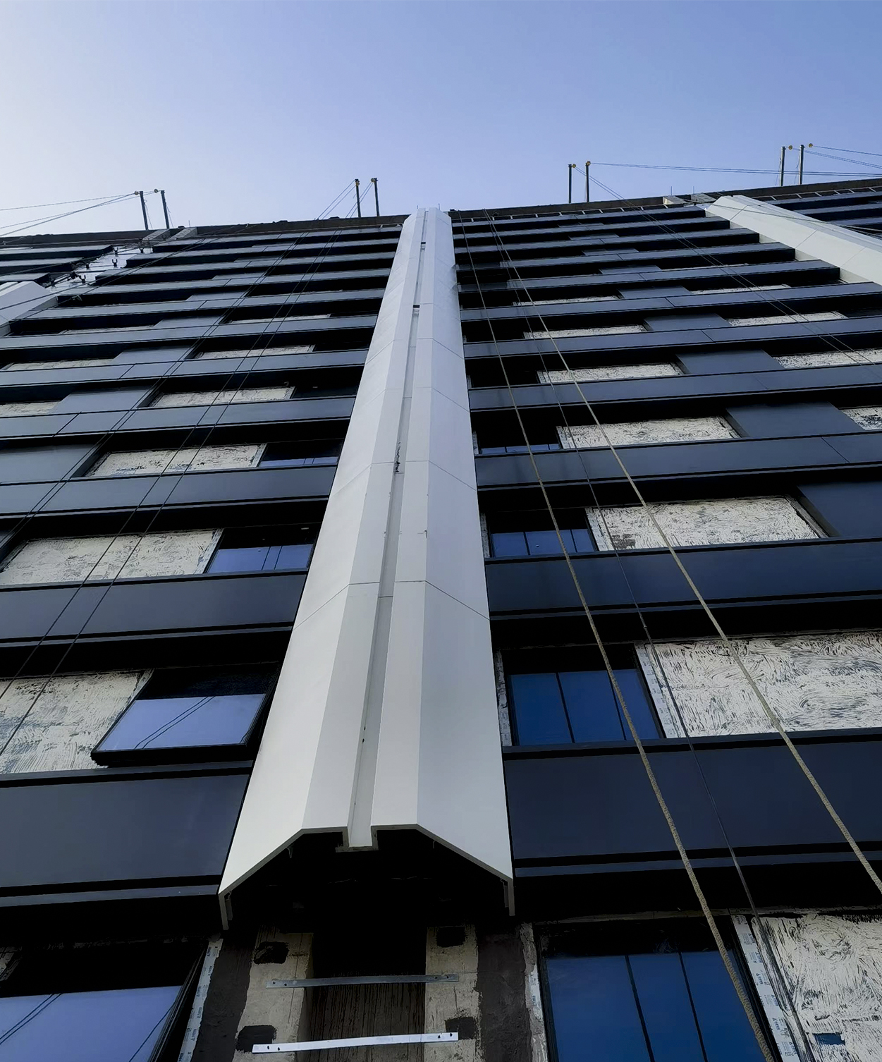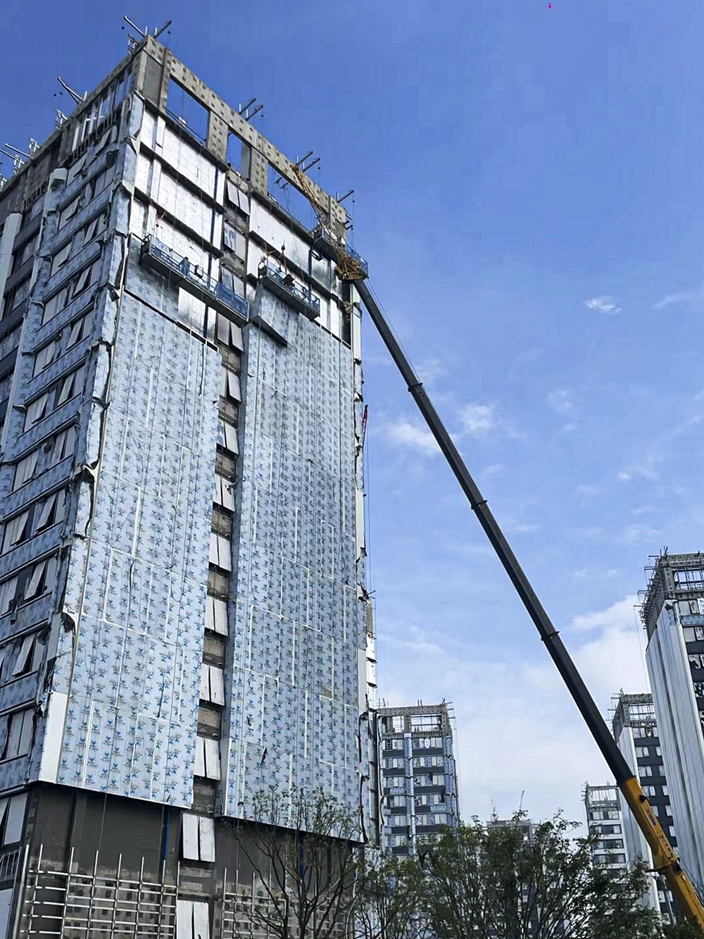 為保障幾萬名研發(fā)人員的生活配套,緊鄰華為研發(fā)中心的上海西岑單身公寓項目目前也基本完成。項目包含35棟單體建筑和1棟短租式公寓,公寓進度非常迅速,外墻采用了高效集成的裝配式單元金屬幕墻系統(tǒng)。裝配式幕墻污染少、節(jié)能環(huán)保,可減少90%以上的建筑垃圾 。同時由于裝配式幕墻二次結構已施工前置,所以相對傳統(tǒng)結構安裝,工期會提前10%-15%。
